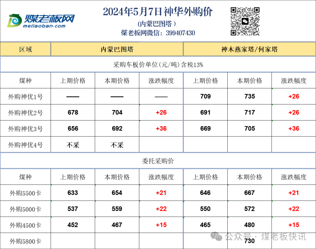 HW煤矿:2024年5月7日早上8点起现金售价:所有煤种↑10