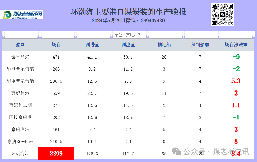 环渤海主要港口煤炭装卸生产晚报