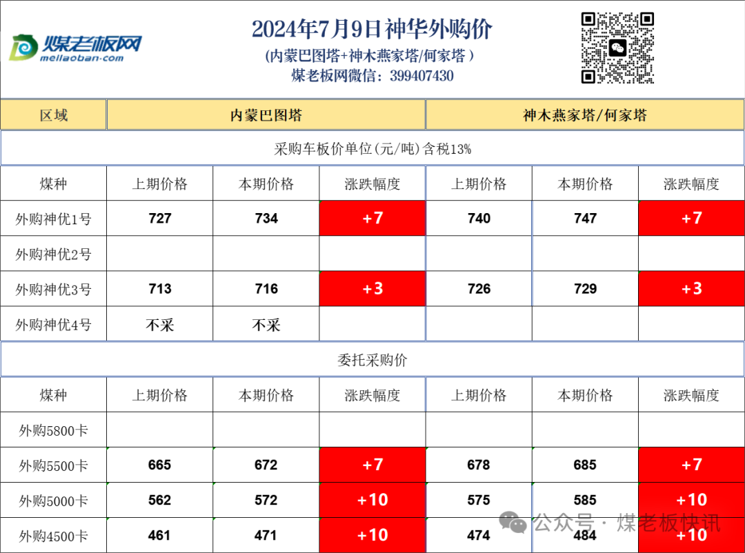 崔家沟煤矿:2024年7月10日上午8点起现金售价:13籽↑10