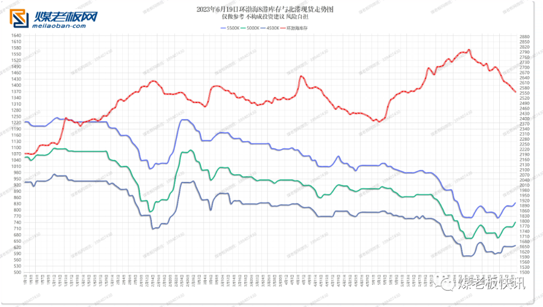 ‘迎峰度夏’传统用煤旺季加持下,各需求端口用煤体量均增,产地煤矿因检修、倒工作面、安全及环保检查等,产量未能完全释放,供需格局发生转变,‘买涨不买跌’的心理刺激,最新高温港口库存合计2556.8万吨,单日下降48万吨,部分省市用电量持续攀增,市场价格低于长协的环境下,部分前期维持刚需的客户着手采购市场煤。