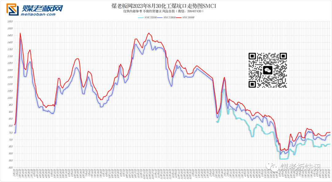DC煤矿:2023年8月30日0点起现金售价:面煤↑15 面籽↑15