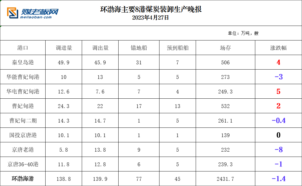 港口:港口延续小幅上涨吧,实际货源报价较前一日上涨5~8元/吨,询货积极,成交情况有所改善。最新沿海八大电厂调入量138.8万吨,调出量139.9万吨。实际货源报价:5500卡1000~1030;5000卡890~920;4500卡780~800。实际成交价4500卡770。
