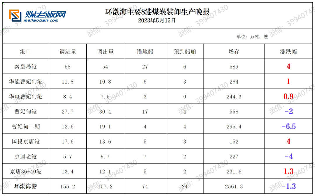 环渤海主要港口煤炭装卸生产晚报