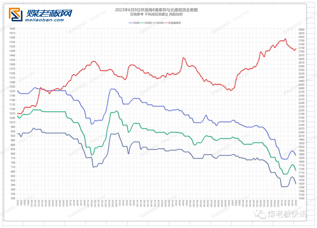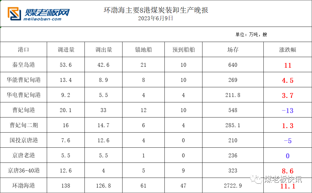 主产地:周末至6月12日上午,产地煤炭行情仍持小幅上涨10~30元/吨,近期块煤销量相对偏好价格存一定支撑,其中榆林榆阳、横山等区域煤矿价格开始转跌,降幅主要集中10~20元/吨;神府地区暂时维持涨多降少,主流运煤通道及煤矿煤车仍偏多。利空累积提速,坑口部分煤矿涨价后,客户派车逐有减少,随即开始小幅下调,具有代表性的部分网红矿尽管煤车排队等待,价格亦开始调降。周末至今调价煤矿数量21多家,其中降价煤矿10余家,煤车数量暂时变化不大,部分煤矿减产、检修等,目前煤矿库存压力较小。
