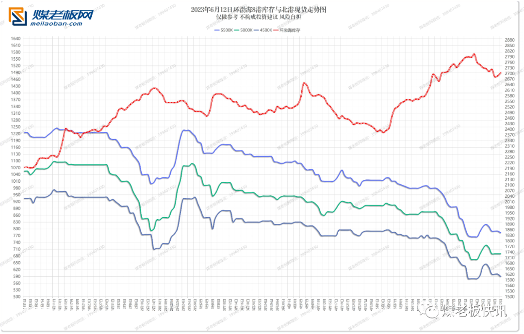最新调价煤矿数量13多家,其中降价煤矿9家,性价比高的局部热销矿煤车排队近百辆,行情走弱趋势渐显。榆阳区域今日民营矿价格趋稳暂无变化,多数持观望等待大矿明日的竞拍结果;内蒙区域除了个别热销大矿块煤上涨,装车需要排队外,行情开始进一步回落。体来看,随着需求减弱,煤价上行乏力,但‘迎峰度夏’在即,随着港口日耗明显回升,终端仍有补库需求预期,价格深跌亦几率较小,偏弱中趋稳小幅波动。