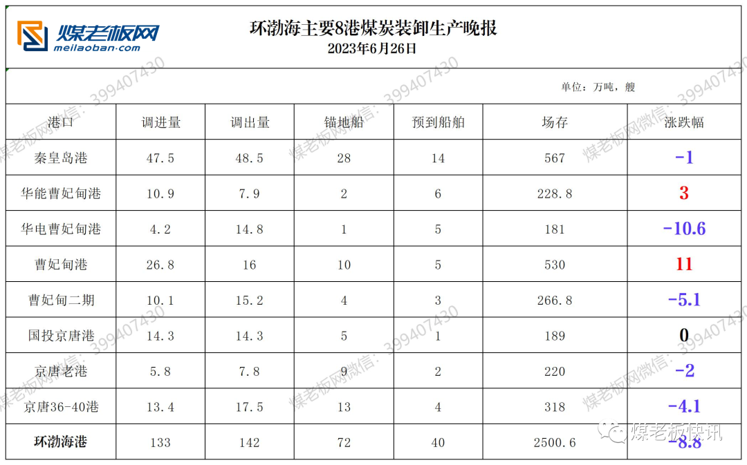港口:最新北港实际货源报价持续下跌,煤价较前一日均价跌幅为9~15元/吨,各港库存不断下降。市场观望情绪依然较浓,港口实际成交偏弱。目前,沿海八省电厂合计存煤2478.3万吨,北港库存下降14.9万吨。最新沿海八大电厂调入量133万吨,调出量142万吨。最新实际货源报价:5500卡820;5000卡720~735;4500卡625,实际成交价暂无。