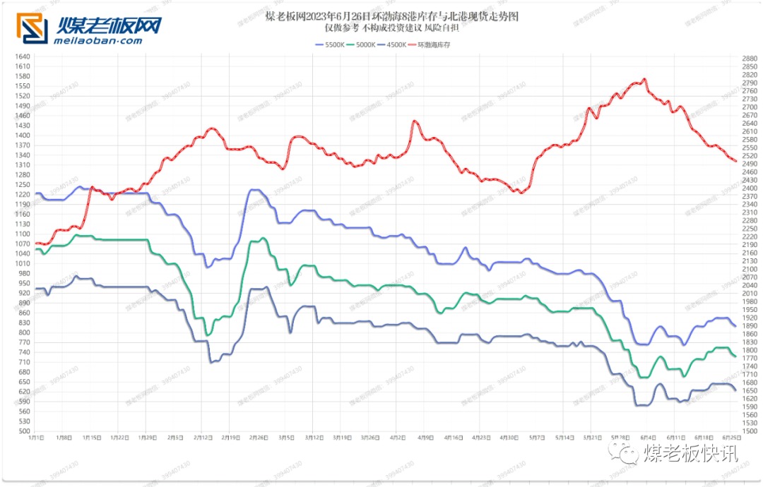 今日榆阳区再启一轮20~50元/吨的一波降潮;府谷区域稳中小幅下跌,横山地区部分大矿单次降幅达60~70元/吨。为拉动销售减少场地逐增的库存压力,部分煤矿选择晚上或清早率先降价。临近月底,部分电厂暂停市场煤采购,港口持续下跌,耗煤负荷增加支撑不强,贸易商报价持续下探,市场看跌情绪继续发酵。点击查看最新热文一天一降!煤矿‘降价战’全面打响!