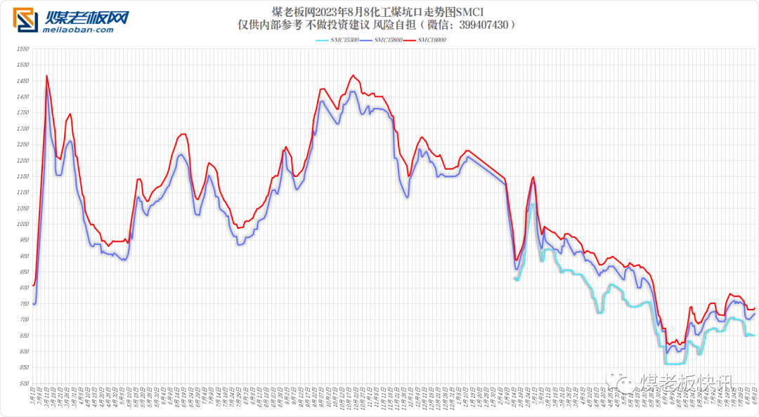 主产地:“坑口经昨天的一波小涨后,今天涨势对比明显趋缓,部分热销矿系统预约车辆出现减少,今日大矿竞拍涨跌互现。周末至8月8日上午,据追踪的代表煤矿来看,调价煤矿不足10家,7家价格小幅上涨,1家涨跌互现。其中1家刚调涨,随即发布井下设备维修暂停生产通知;1家面、籽煤调降10~20元,仅混块价格上涨10元/吨,部分矿存货较少,车也少。目前周边煤场普遍理性,谨慎少量采购,环伺市场动态及同行,暂采取不涨不降策略。