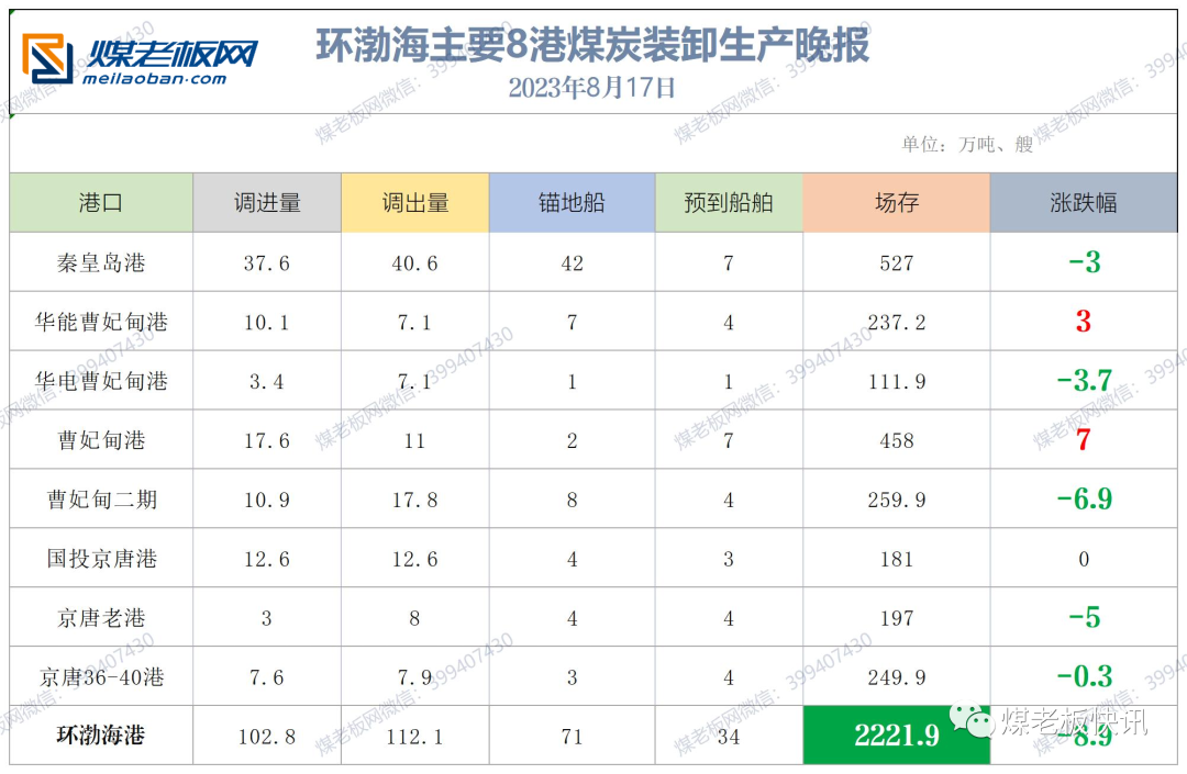 BJ煤矿:2023年8月18日12点起现金销售价格:籽面、化工面煤↓20,其他煤种不变。