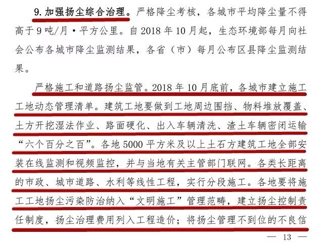 《攻坚行动方案》里,并未要求建筑工地要停工,仅第9条要求各地加强扬尘综合治理。所以前段时间闹得沸沸扬扬的文章《10月1日起,工地最严停工令来袭!》可以静静了。
