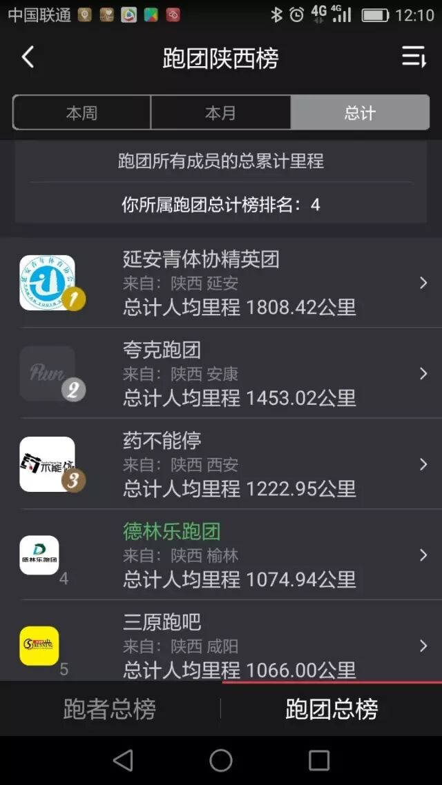 德林乐跑团在陕西榜人均排名第4名,人均里程1051公里
